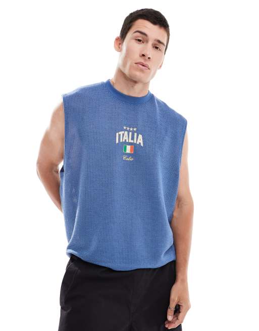 ASOS DESIGN - Boxy oversized hemdje van mesh in blauw met Italia-print