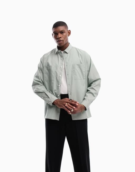 ASOS DESIGN - Boxy, oversized overhemd met dubbele zakken in grijs