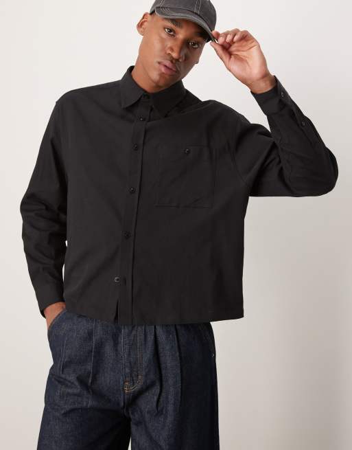 ASOS DESIGN - Boxy oversized overhemd met wafelstructuur in zwart