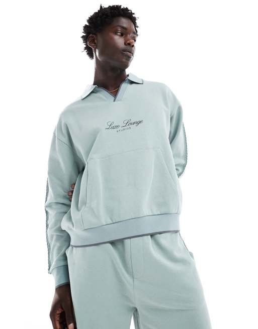 ASOS DESIGN - Boxy oversized polo-sweatshirt in blauw, deel van co-ord set