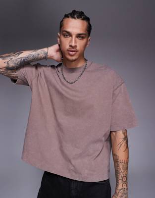 ASOS DESIGN - Boxy oversized T-shirt van zware stof in bruin met wassing