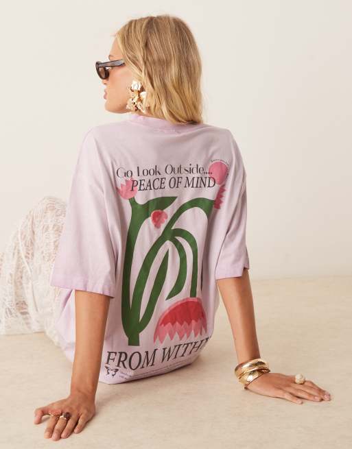 ASOS DESIGN - Boyfriend T-shirt met grafische bloemenprint op de achterkant in paars