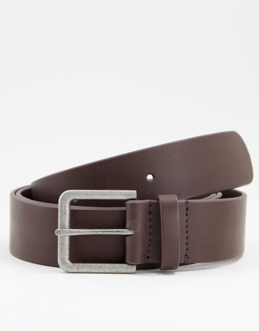 ASOS DESIGN - Brede nette leren riem in bruin met antieke zilveren gesp