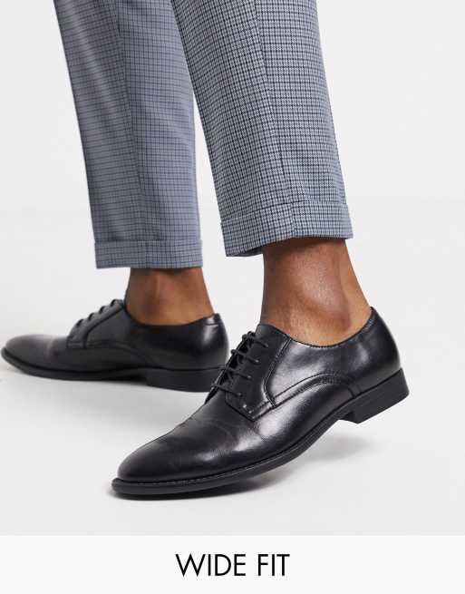 ASOS DESIGN - Brede Pasvorm - Derby schoenen van zwart imitatieleer