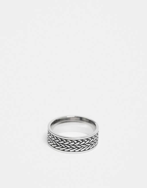 ASOS DESIGN - Brede ring van waterbestendig roestvrij staal met reliëf in zilverkleur