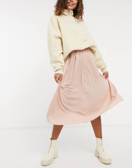 ASOS DESIGN - Breed geplooide midirok in roze