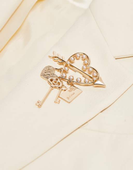 ASOS DESIGN - Broche met bedeltjes in goudkleur
