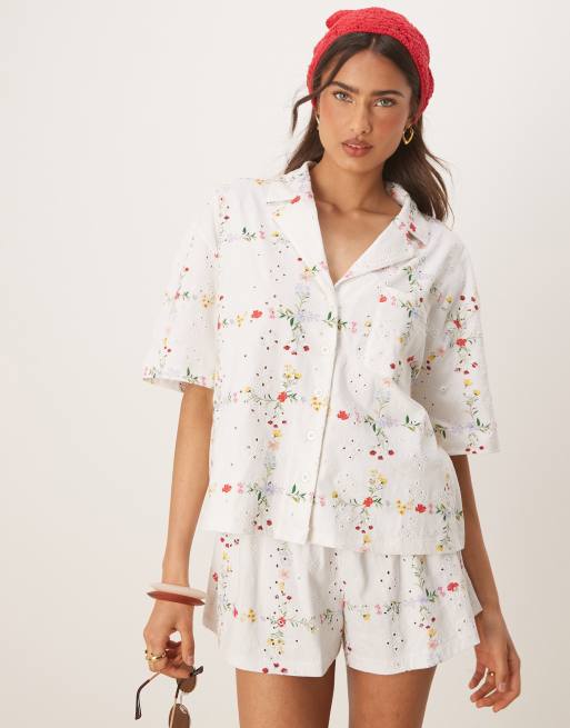 ASOS DESIGN - Broderie overhemd met bloemenprint