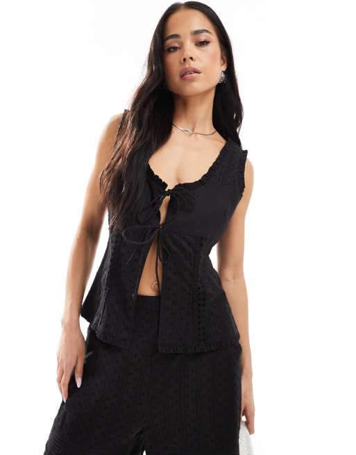 ASOS DESIGN - Broderie top in zwart, deel van co-ord set