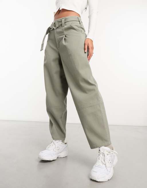 ASOS DESIGN - Broek met hoge taille en riem in olijfgroen
