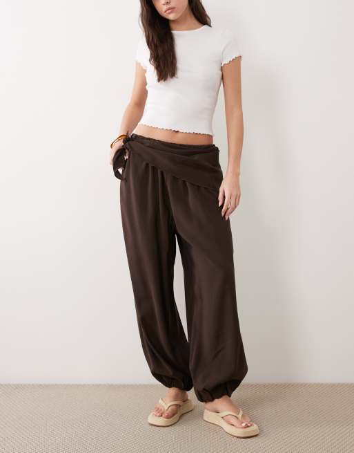 ASOS DESIGN - Broek met modallook, ballonpijpen en gestrikte taille in chocoladebruin