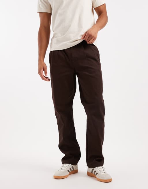ASOS DESIGN - Broek met rechte pijpen in bruin met plooien en ingenomen zijkanten