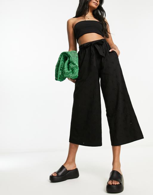 ASOS DESIGN - Broek met wijde pijpen, broderie en strikceintuur in zwart
