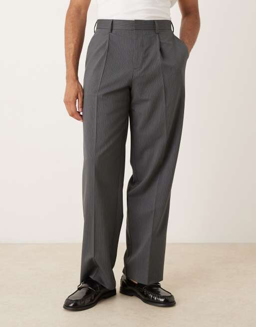 ASOS DESIGN - Broek met wijde pijpen in antracietgrijze krijtstreep