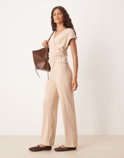 ASOS DESIGN - Broek met wijde pijpen in stone, deel van co-ord set