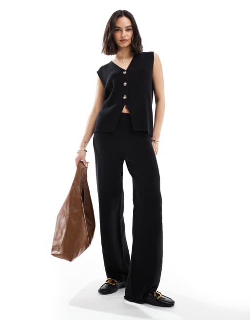 ASOS DESIGN - Broek met wijde pijpen in zwart, deel van co-ord set