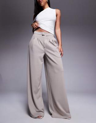 ASOS DESIGN - Broek met wijde pijpen van jersey keperstof in beige