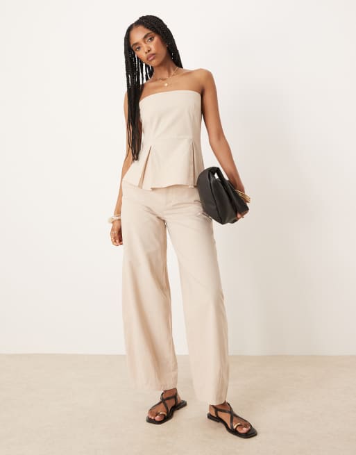 ASOS DESIGN - Broek met wijde ronde pijpen en linnenlook in beige
