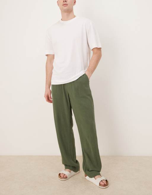ASOS DESIGN - Broek van linnenmix met baggy pasvorm en elastische taille in donkergroen