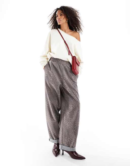 ASOS DESIGN - Broek van scuba-achtige stof met omslag in luipaardprint