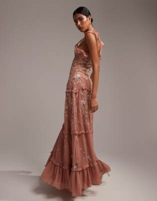 ASOS DESIGN - Bruidsmeisjes - Maxi cami-jurk met versiering en borduursels in roze