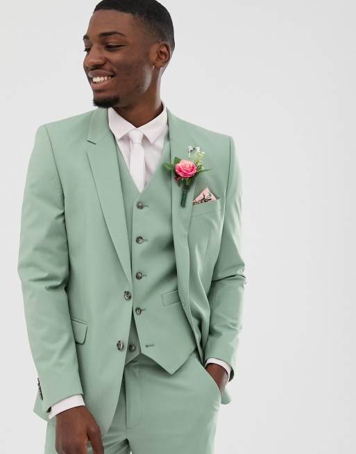 ASOS DESIGN - Bruiloft - Smalle colbert in saliegroen