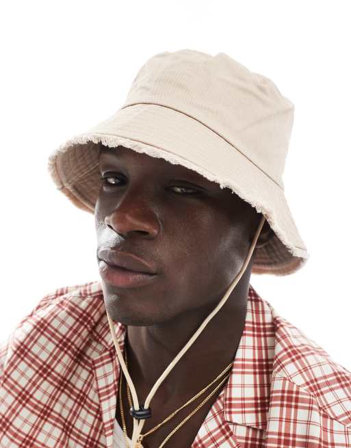 ASOS DESIGN - Bucket hat met gerafelde rand in stone