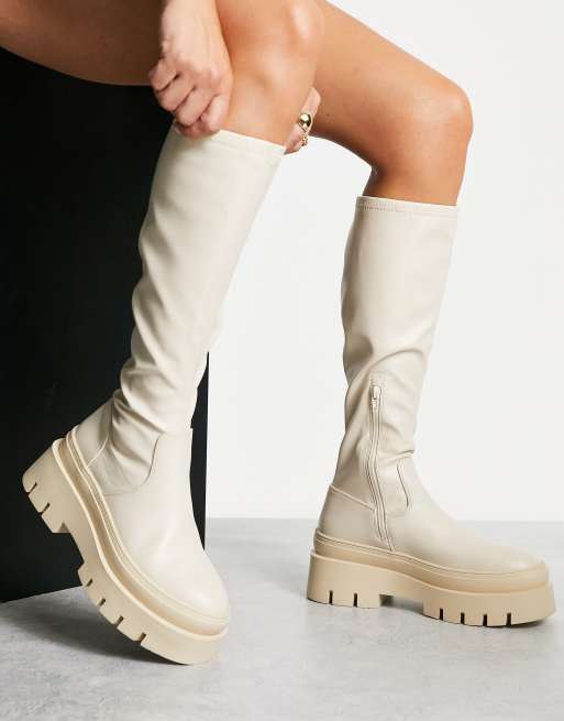ASOS DESIGN - Caramel - Knielaarzen met dikke zool in gebroken wit