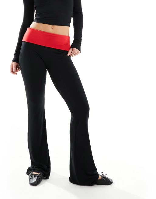 ASOS DESIGN - Casual flare-broek in zwart en rood, deel van co-ord set