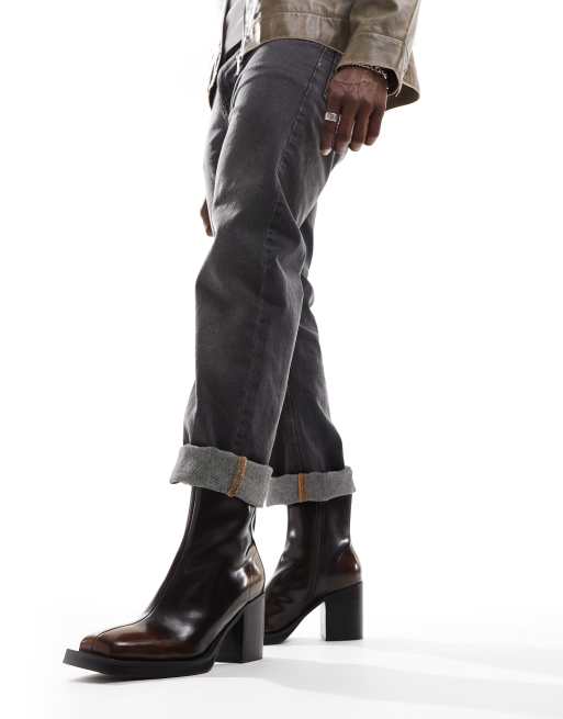 ASOS DESIGN - Chelsea boots met hak in bruin
