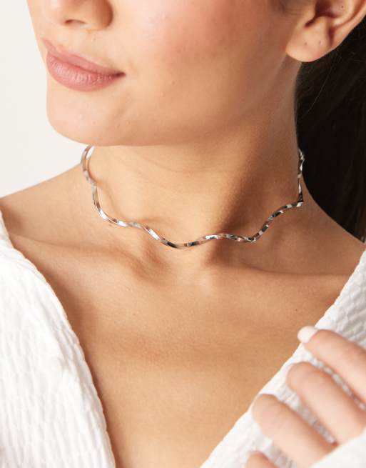 ASOS DESIGN - Choker in torque-stijl met golvend ontwerp in zilverkleur