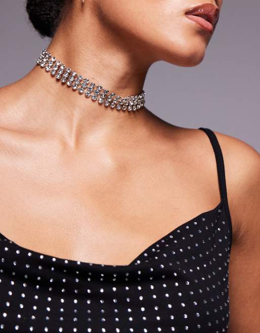 ASOS DESIGN - Choker-ketting met rond kristalontwerp in zilverkleur