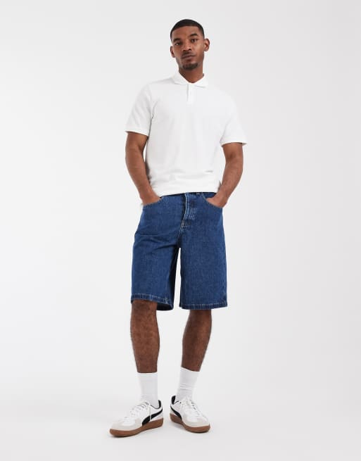 ASOS DESIGN - Circular Design Collection - Denim jort in mid-wash blauw