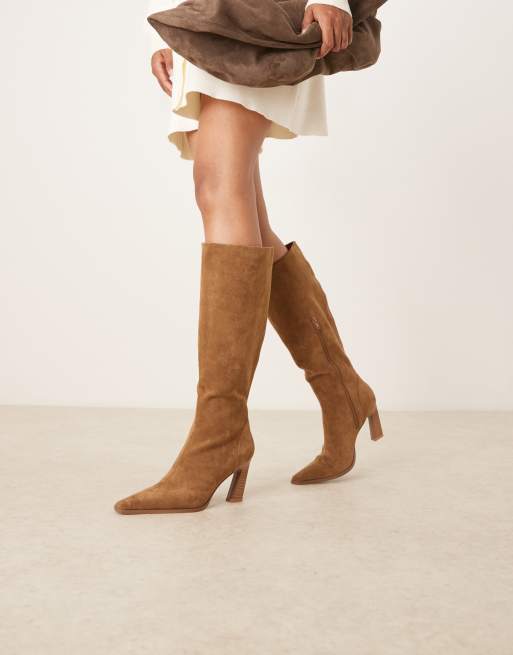 ASOS DESIGN - Clara - Knielaarzen met brede pasvorm en vierkante neus in zandkleurig suedette