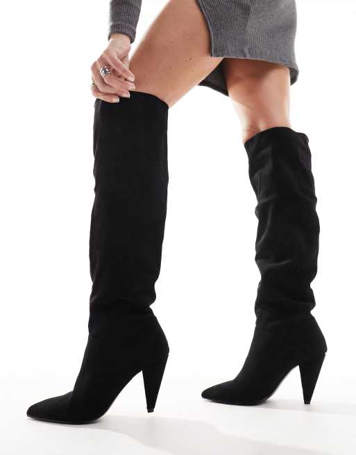 ASOS DESIGN - Clove - Ruime kniehoge laarzen met kegelvormige hak in zwart micro