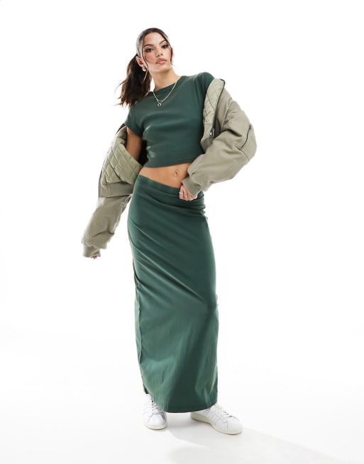 ASOS DESIGN - Co-ord set in dennengroen met wassing
