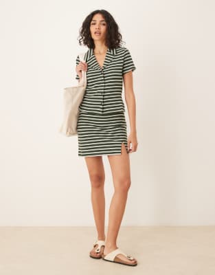 ASOS DESIGN - Co-ord set met textuur in groene en witte strepen