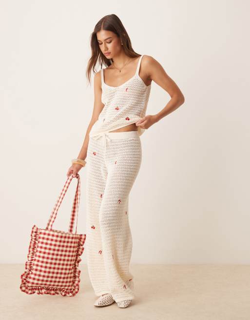ASOS DESIGN - Co-ord set van gebreide cami top fruitborduursel en broek in ecru - MULTI