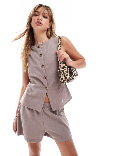 ASOS DESIGN - Co-ord set van gilet en short met linnenlook in bruin