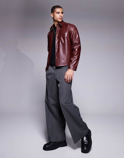ASOS DESIGN - Co-ord set van imitatieleer met oversized overhemd met rechte pasvorm en broek met rechte pijpen in bordeauxrood