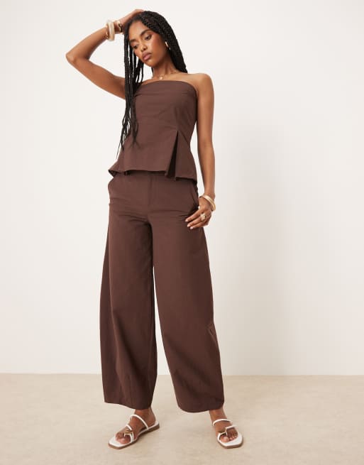ASOS DESIGN - Co-ord set van linnenmix van bandeau top met bandje in de taille en broek in donkerbruin