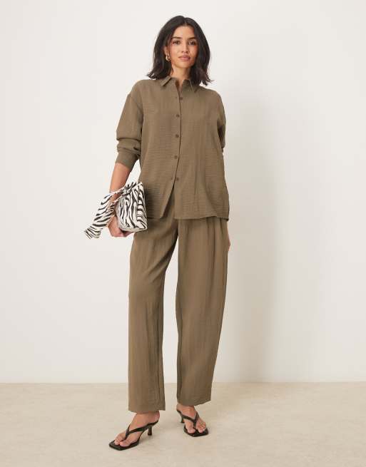 ASOS DESIGN - Co-ord set van overhemd en smaltoelopende broek met lipje in kaki