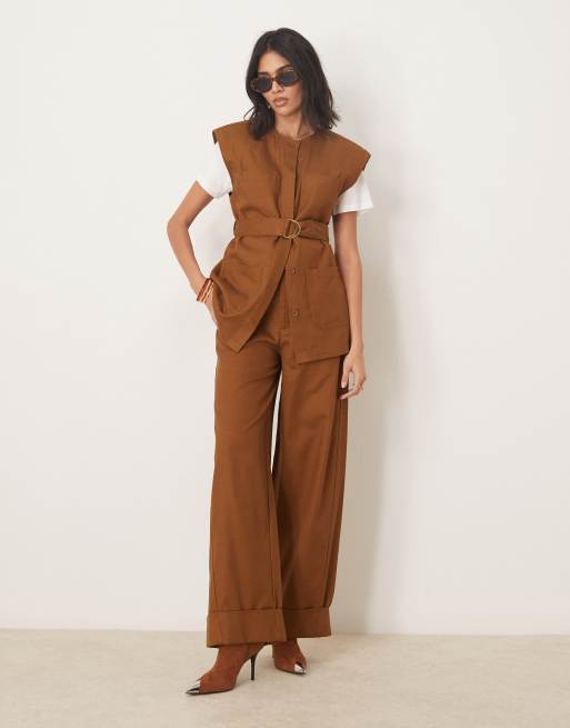 ASOS DESIGN - Co-ord set van overhemd zonder mouwen en ruimvallende broek in lichtbruin