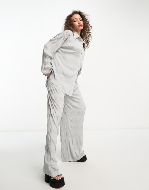 ASOS DESIGN - Co-ord set van oversized plissé overhemd en broek met wijde pijpen in zilver
