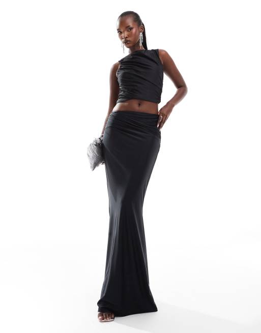 ASOS DESIGN - Co-ord set van tanktop met overslag in de taille en maxi rok in zwart