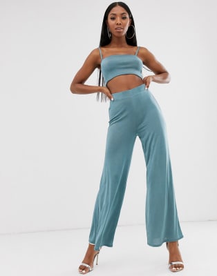 ASOS DESIGN - Combi-set van bralette met vierkante hals en broek met wijde pijpen in soepelvallende stof