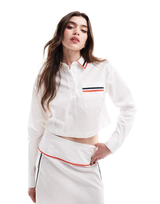 ASOS DESIGN - Cropped overhemd met lange mouwen en biezen in wit, deel van co-ord set