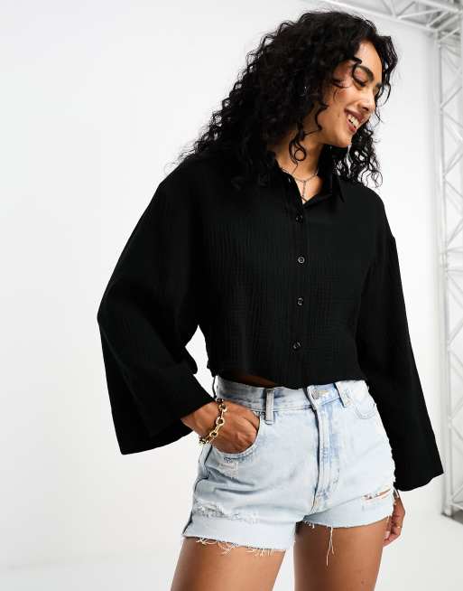ASOS DESIGN - Cropped overhemd van kaasdoek in zwart