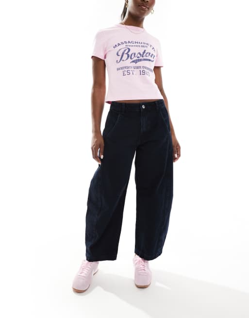 ASOS DESIGN - Cropped oversized jeans met wijde ronde pijpen en halfhoge taille in zwartblauw