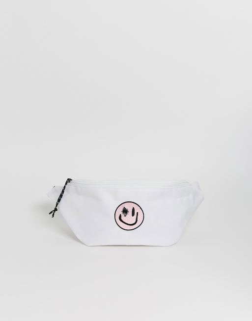 ASOS DESIGN - Crossbody-heuptasje met gezichtslogo in wit